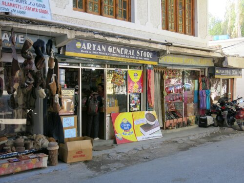 in our little street in leh (the capital city of the region of laddakh) there are a lot of shops catering to the needs of backpackers and trekkers. many ‘traditional’ goods, ‘antiques’ which are sold in the street are prominently featuring the swastika and many of the stores take the by word of ‘aryan’, like in ‘aryan general store’, ‘aryan travels’ etc. a lot of our fellow travellers are israelis and they are so frequent that our closest internet café which is of course called ‘aryan’ has a sign out side promoting its offer of ‘hebrew keyboards’ available. I did mention this to some israelis we were trekking with in the last days and they had not even realized – they are all in their early 20ties, maybe that’s why. or maybe i am overly sensitive, because after all there is none of the european meaning contained in these objects of indian tradition – on the other hand these objects are here to be sold to mostly european tourists…..