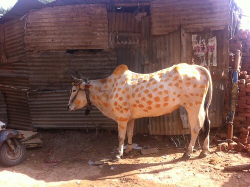 so, in agra, just yesterday, I learned that cows (?) are much more fun, when you pretend they are something else (leopards? giraffes? )…