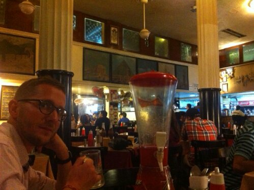some weeks later, at the end of our time in india we came to bombay. massive security in official and otherwise busy buildings reminds us of the terrorist attacks in 2008 which targeted the jewish community, two upscale hotels and a popular inner city coffee place. the coffee place, leopolds cafe, is still there and a favorite tourist hang out. in a window to the street and on the walls inside the place one can still see the holes which are the remnants of the terrorists shooting with automatic rifles. several people died that day in leopolds cafe. a lot more in the other crime scenes.